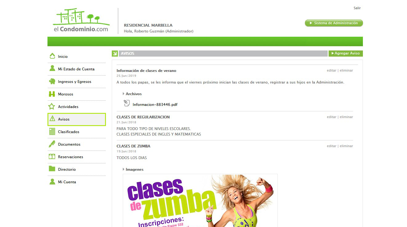 Consulta los avisos de interés general que publica el administrador (ej. asambleas, acuerdos, etc.)